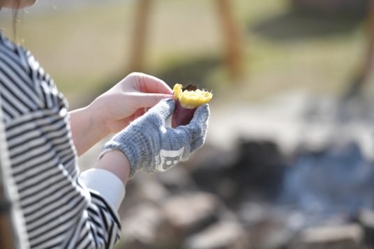 薪ストーブで焼いたあつあつほくほくの焼き芋にアイスをトッピングしてちょっとスペシャルなおやつタイムを楽しみませんか?